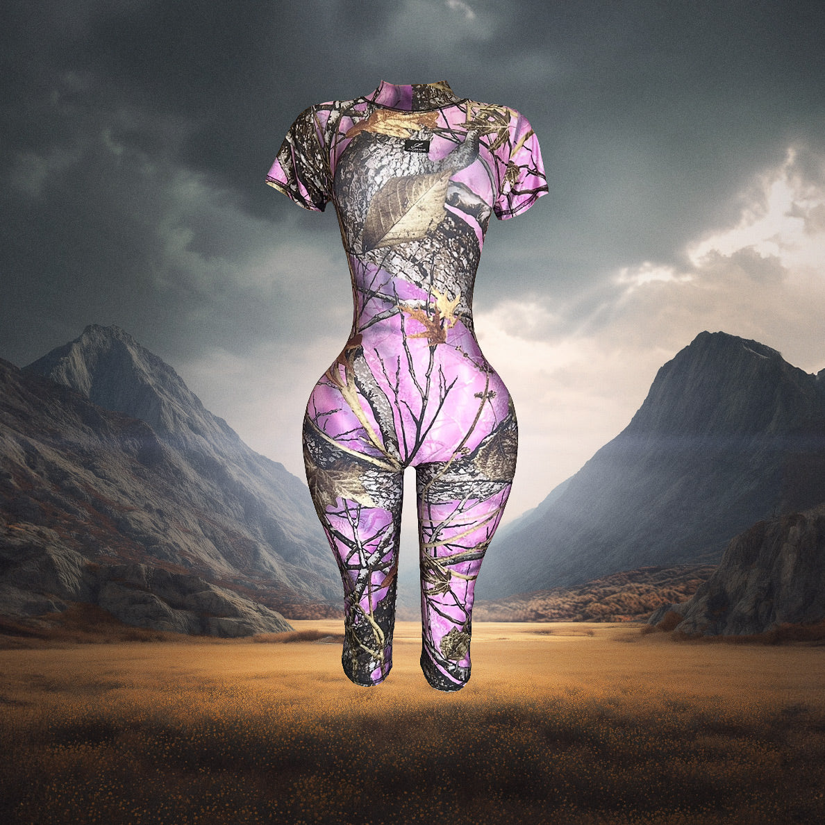 Autumn Capri – Lavender Camo Bodycon Capri Jumpsuit