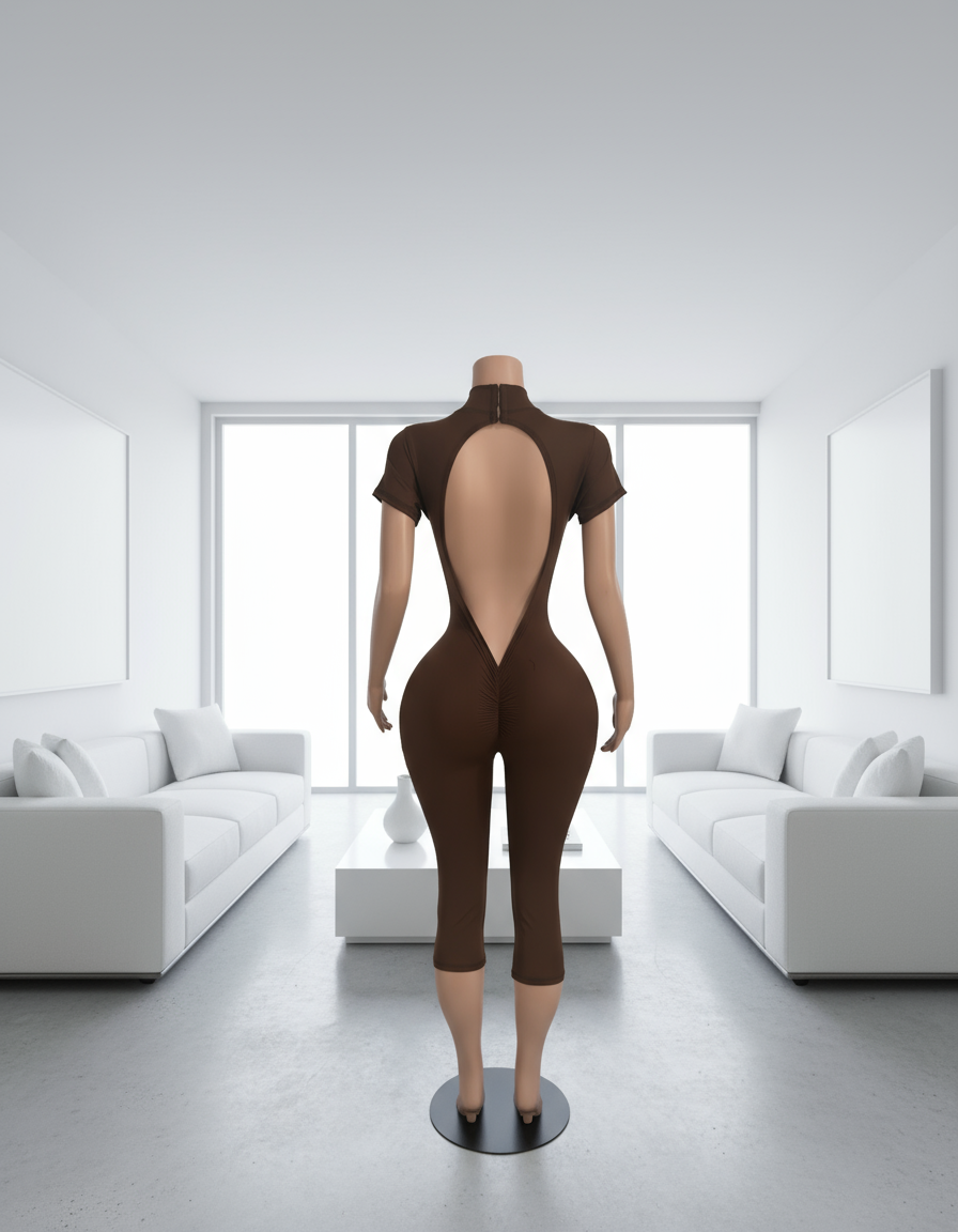 Shades Capri – Solid Color Mock Neck Bodycon Capri Jumpsuit